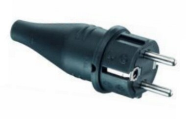 CONTRA STEKKER 2P+RA 16A/250V RUBBER ZWART
