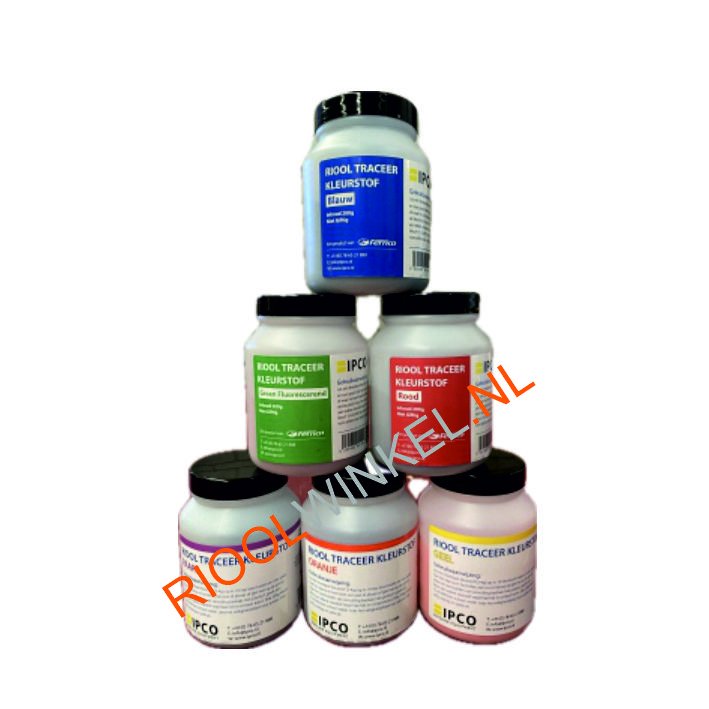 Riooltraceerkleurstof is een niet giftig en geurloze kleurstof om lekkages en beschadigingen op te sporen, maar ook om de loop van een leiding te volgen. Het is eenvoudig in gebruik, niet schadelijk en hoog geconcentreerd. Verkrijgbaar in de kleuren rood, groen, oranje, blauw, paars en geel