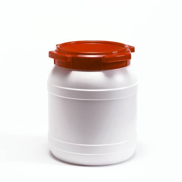 HDPE WIT KUNSTSTOF VAT MET ROOD SCHROEFDEKSEL.